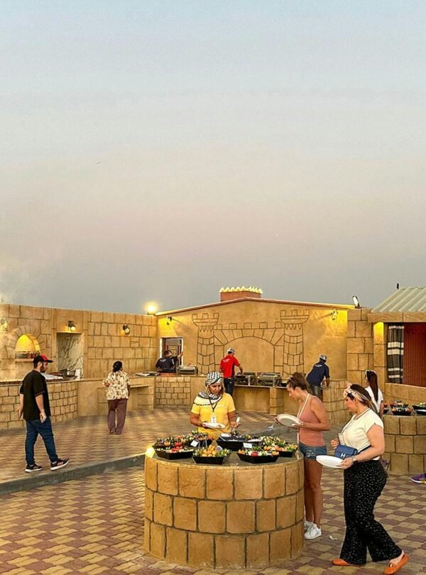 - At camp, enjoy an unlimited BBQ buffet dinner (veg, non‑veg & Jain) with live belly dance, Tanoura, fire shows, and henna painting; optional VIP seating enhances the experience.